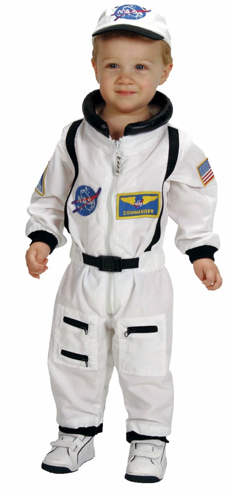 This top quality Astronaut Suit is sure to please your little space traveler. Its official look and feel make it seem like it’s real. Includes: Inseam snaps for easy diaper changes, official NASA patches, including special commander patch, official looking embroidered NASA cap with soft terry cloth band lining the inside rim.Â