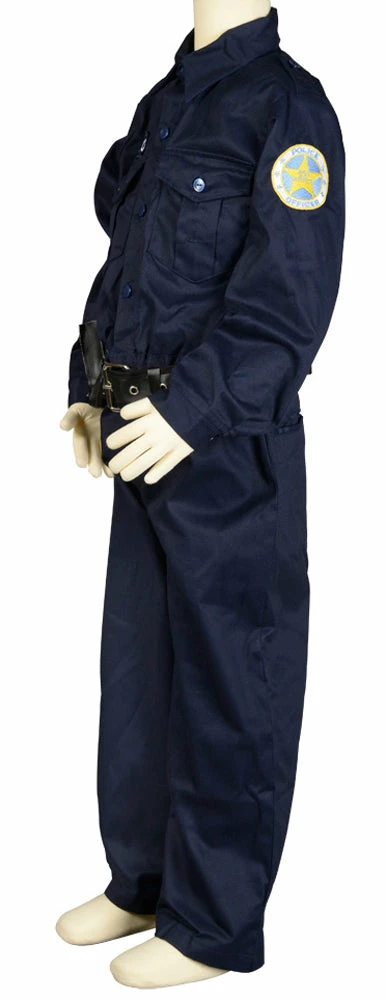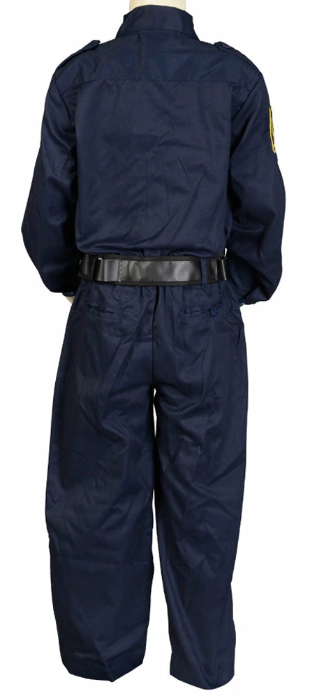 Junior Police Officer costume includes a dark blue button-front jumpsuit with official patches and button closure chest pockets, a black belt, and adjustable police hat. Add AR37ACC Accessory Pack and you are ready for anything!