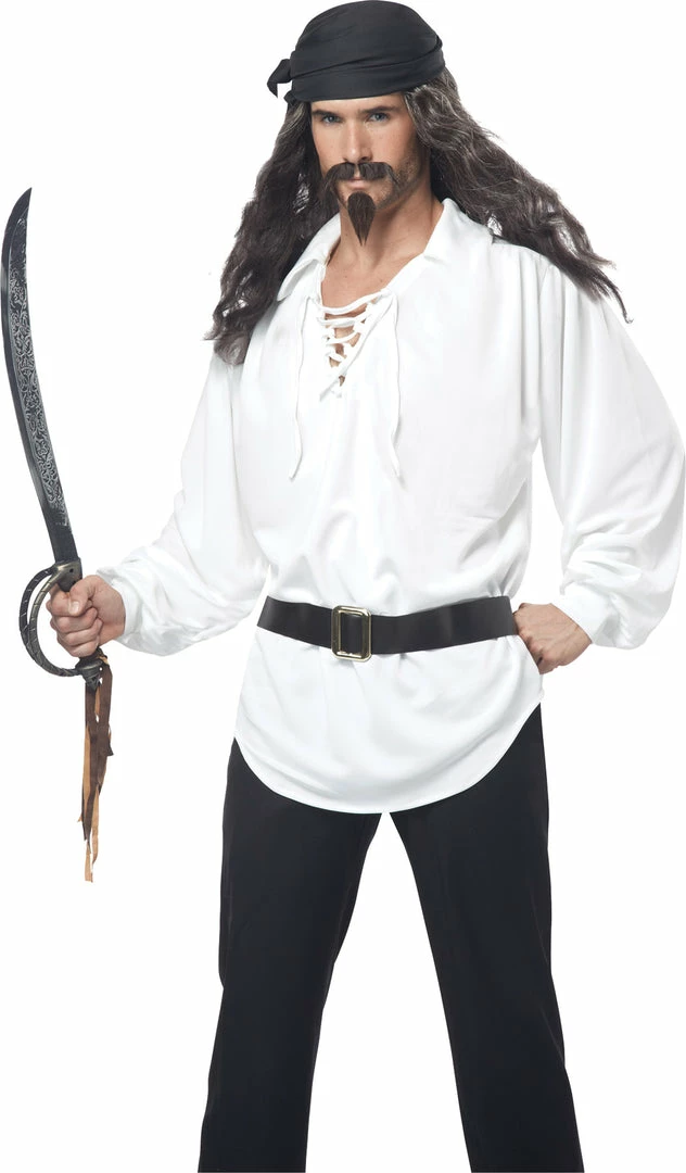 A great accessory for your pirate costume. Wig, moustache and chin patch. One size fits most adults.