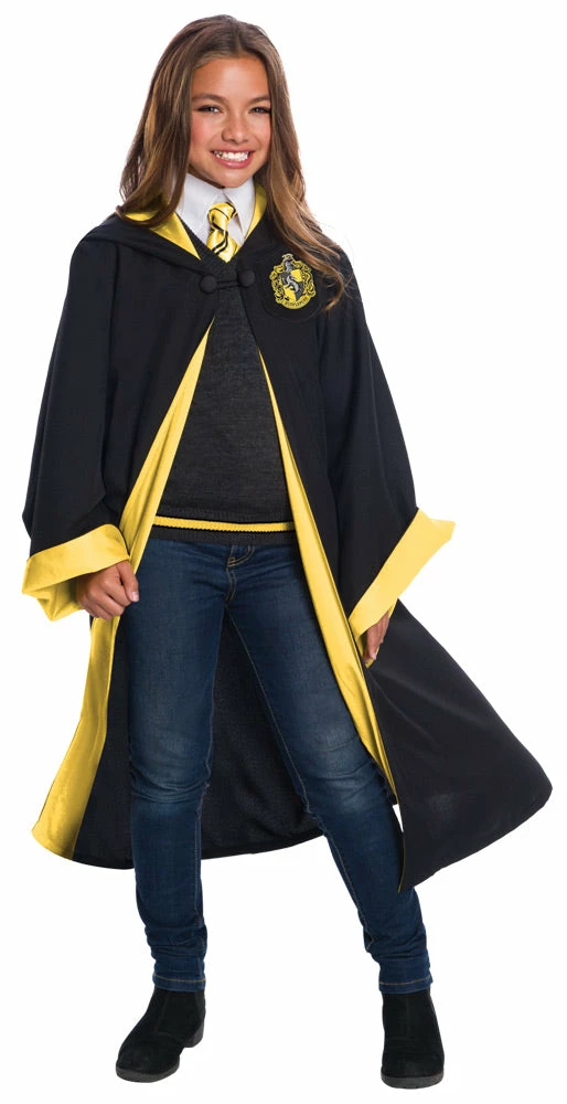 Officially licensed. Look just like you stepped out of your favorite Harry Potter movie with this great new Hufflepuff student set! Hufflepuff is the most inclusive among the four houses; valuing hard work, dedication, patience, loyalty, and fair play rather than a particular aptitude in its members. The emblematic animal is a badger, and yellow and black are its colors. This set includes robe, deluxe heather knit sweater, and deluxe tie. Add your own shirt and pants.