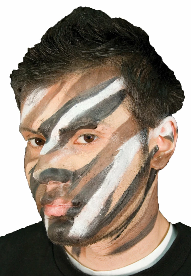 Multi-color makeup stacks contain high-coverage cream makeup in stackable, reusable containers. Choose from one of our many color combinations to create the perfect design. Desert Camo stack includes white, medium flesh, wolf brown, and black makeups.