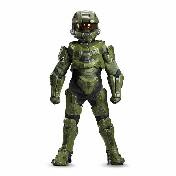 Save humanity and defeat the covenant. This super deluxe quality Master Chief costume is perfect for Halo fans! Get in on the action when you dress up in one of the most realistic Halo costumes. Become the greatest Spartan of all time, John-117 with this 26 piece costume set and turn you into your favorite gaming character. The Halo Master Chief Ultra Prestige Child Costume features a 26-piece set that includes a green hooded jumpsuit, light-up helmet, chest piece, back piece, cod piece, seat piece, and pairs of: gloves, shoe covers, thigh pieces, shin pieces, jet packs, upper arm pieces, elbow and gauntlet pieces.
