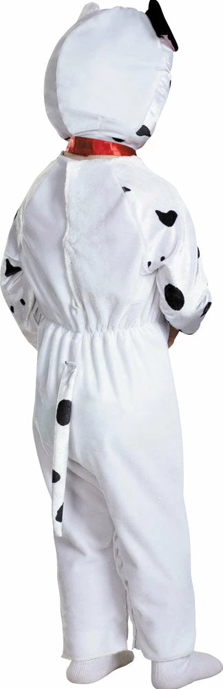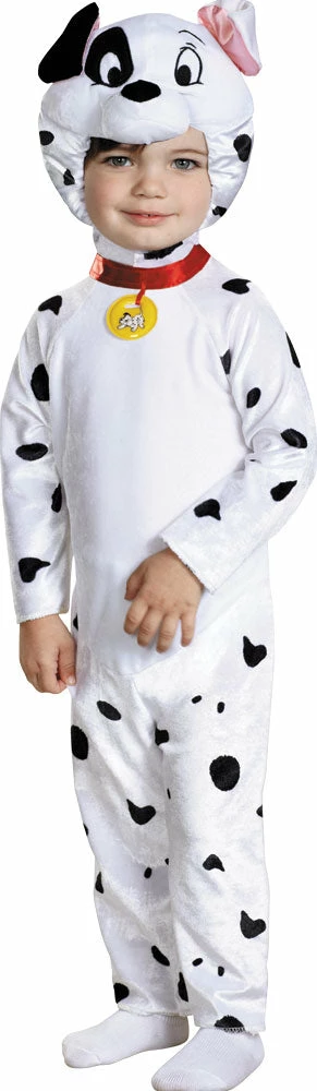 Official 101 Dalmatians Child Costume includes an easy-to-wear one-piece soft polyester Jumpsuit with a detachable tail. The padded Dalmatian headpiece slips on and off with ease. The open-face design ensures your child has clear vision at all times. The attached red collar with character tag completes the look. Shoes or socks not included.