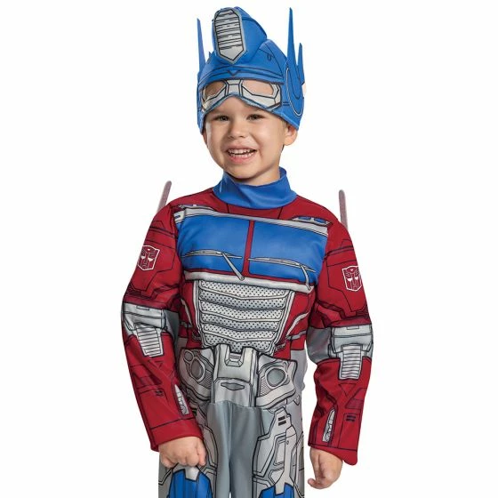 Transform into the leader of the Autobots and prepare to battle Megatron, the leader of the Decepticons! This adorable robot in disguise toddler costume will be a hit this Halloween! Costume includes blue and red printed jumpsuit with muscle torso and arms, attached shoulder pieces, and soft character headpiece. Socks are not included. Toddler Muscle 3t 4t
