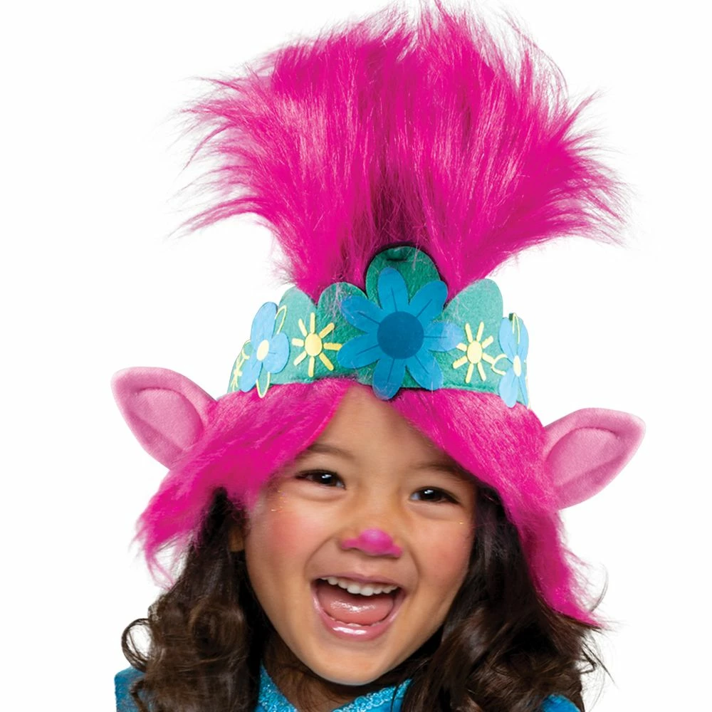 Become everyone’s favorite Pop Troll with this cute and colorful Queen Poppy Costume. Inspired from the hit animated movie, Trolls World Tour, this Queen Poppy dress will have your little one ready to sing and dance to all the beats. Set out on an epic adventure with Branch to stop the villainous Queen Barb of the Hard Rock Trolls from destroying the other Troll Tribes music. The Trolls 2 Poppy Classic Child Costume includes a shiny blue sleeveless dress with sequin detailing and flower print along the bottom of dress. Also includes character headpiece that features hot pink hair, ears and flowers attached to a band. Shoes not included.