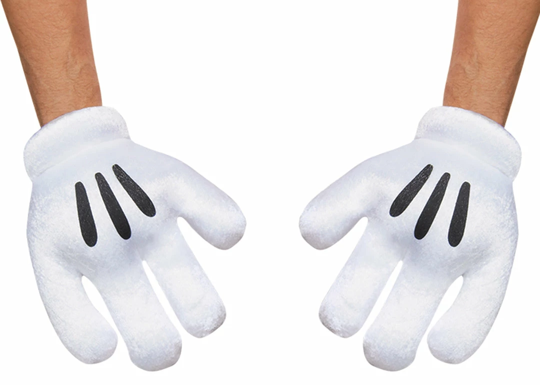 Mickey Mouse Adult Gloves have the traditional cartoon look with 4 fingers and black lines on the back. One size fits most adults.
