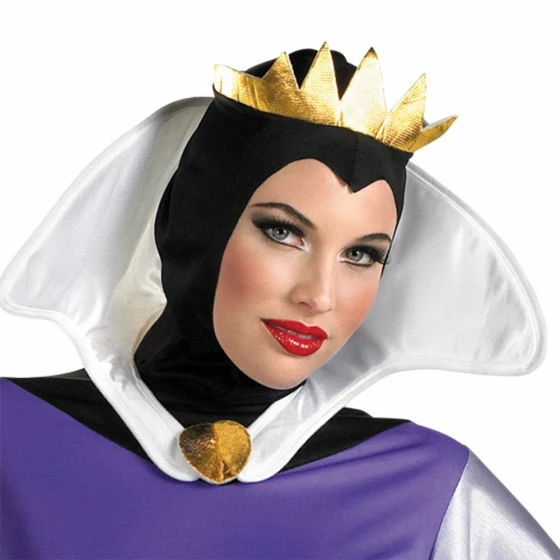 Officially licensed Wicked Queen for Snow White and the seven dwarfs. Disney Evil Queen gown with attached cape, gold cord sash, hood with attached crown and collar.