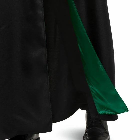 Grab your wand and let the magic begin when you wander the halls of Hogwarts School of Witchcraft and Wizardry. Create a truly magical experience when you step out into the wizardly world dressed in the Adults Slytherin Classic Student Robe. Represent your Hogwarts House and carry on Salazar Slytherin’s legacy dressed in this Deluxe Slytherin Robe. The Harry Potter Adults Deluxe Slytherin Robe features a black robe with Slytherin crest and green satin lined hood. Pants, white shirt, tie, wand and shoes not included.