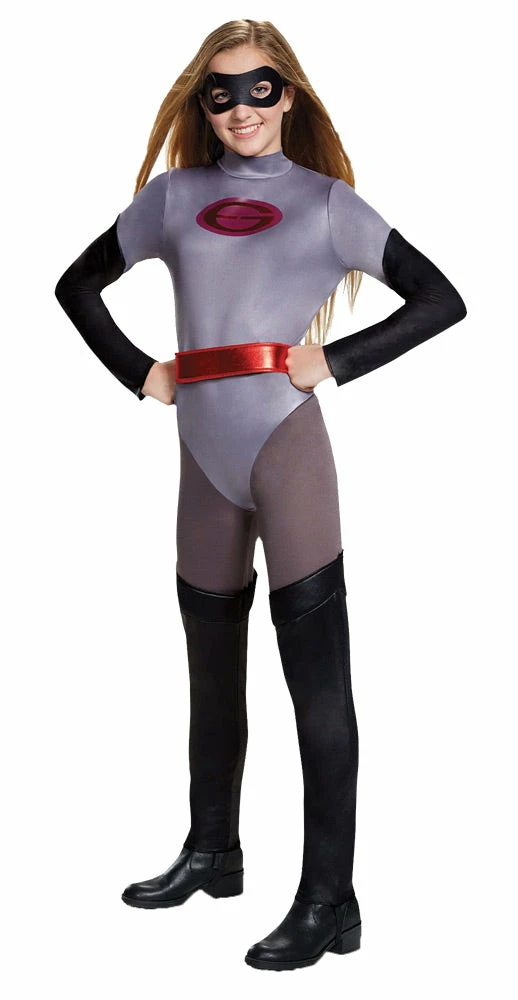 From the latest Incredibles movie blockbuster is Elastigirl’s newest costume. Costume includes: jumpsuit with attached boot covers, belt and eye mask. Add your own shoes. size. Care instructions: hand wash cold, do not bleach. Dry flat, do not iron. 100% Polyester.