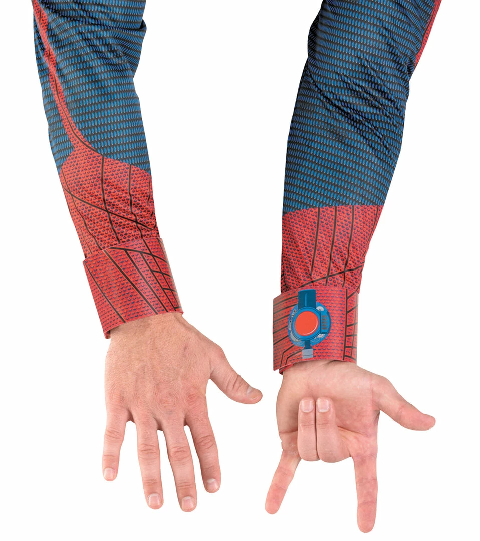 The must-have accessory for your Spider-man costume. Spider-Man armbands with attached web shooter! Velcro closure. One size fits most adults. Does not actually shoot webbing.Â