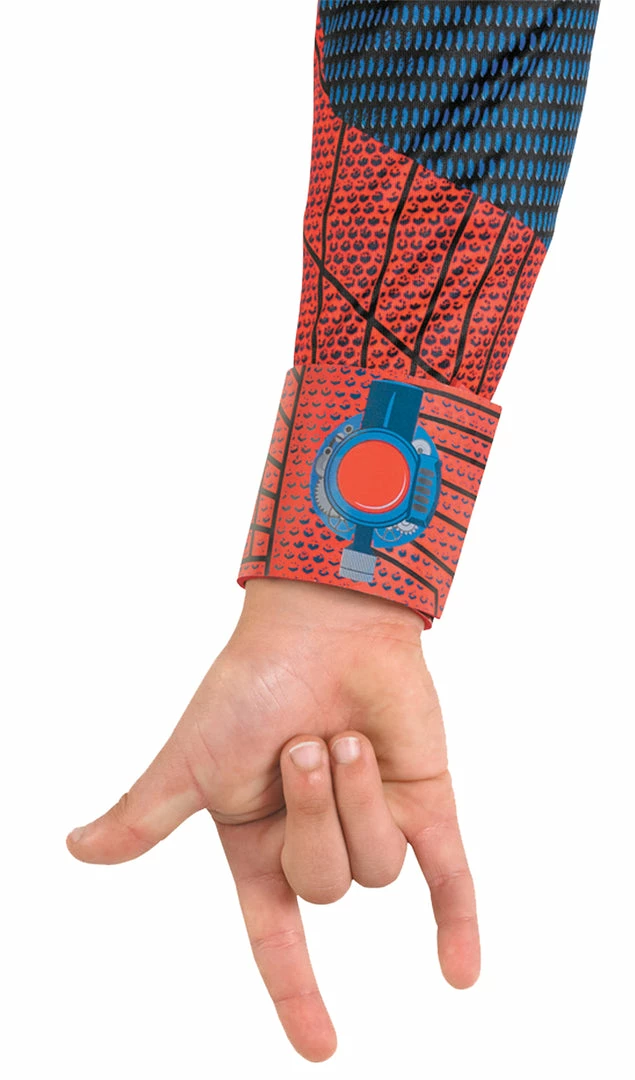 The must-have accessory for your Spider-man costume. Spider-Man armbands with attached web shooter! Velcro closure. One size fits most kids. Does not actually shoot webbing.Â