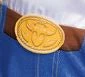One-piece jumpsuit featuring white silk-look top with yellow and red on neck and yellow on sleeves, belt and jean short-look on midriff area and white pants area with cow-spot design. Also comes with hat.