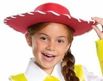 Round up the gang and set out on an adventure! Inspired from the hit Disney/Pixar movie, Toy Story 4, this cute Deluxe Jessie costume will transform your little girl into the prettiest yodeling cowgirl in the neighborhood. The Toy Story 4 Girl’s Jessie Deluxe Child Costume features a western cowgirl-style jumpsuit with printed details and red cowgirl hat with white trim. Boots not included.