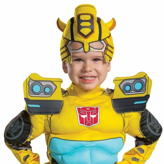 The Battle between the Autobots and Decepticons continues. Now you can be your favorite Transformers hero and save the day! Transform and roll out in the adorable Transformers Bumblebee toddler costume. Costume includes yellow printed jumpsuit with muscle torso and arms, attached shoulder pieces, and soft character headpiece. Socks are not included.