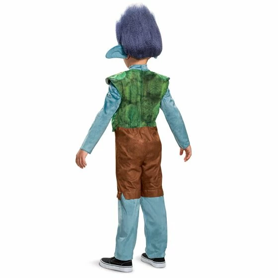 Your little one can become the good natured and loyal Troll from the hit animated movie, Trolls: World Tour. Embark on an epic journey with Queen Poppy to stop Queen Barb of the Hard Rock Trolls from destroying the music of the other Troll Tribes. Your toddler will have a blast bringing Branch’s signature look to life with this fantastic Trolls World Tour Branch Jumpsuit and Wig. The Trolls World Tour Branch Classic Toddler Costume includes a long sleeve blue jumpsuit with patchwork print on the brown shorts and attached green vest with leaf print. Also includes character headpiece that features blue ears and tall hair. Shoes not included.