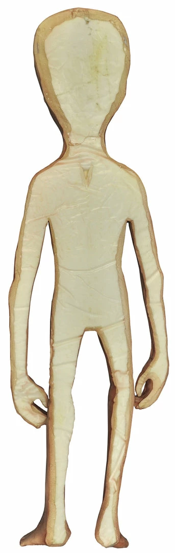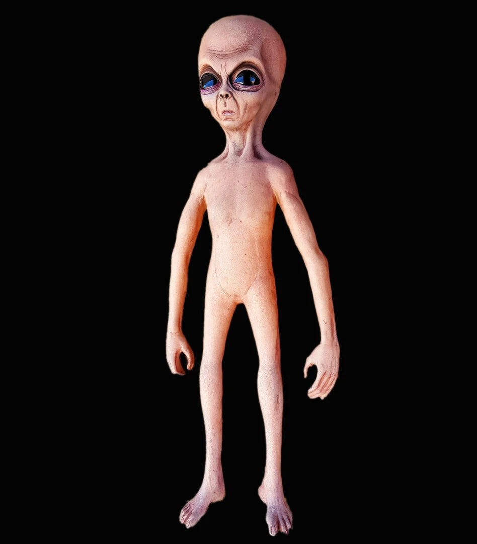 Our Alien Prop is flat backed and designed to lay on a table, floor, or alien exam table for an autopsy scene. In addition, they can be hung or mounted using the wooden armature in the back of the head. This wooden armature allows for mounting on a wall, or for mounting it to stand. It can also be sat in a chair and posed! This life size alien doll is one of our most popular props!Â