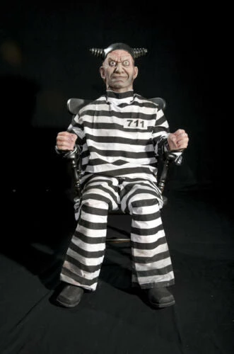 This condemned prisoner has attitude…taunting the crowd as the switch is thrown. All electric (110v) professional animated prop made of foam filled latex. Audio player included.
