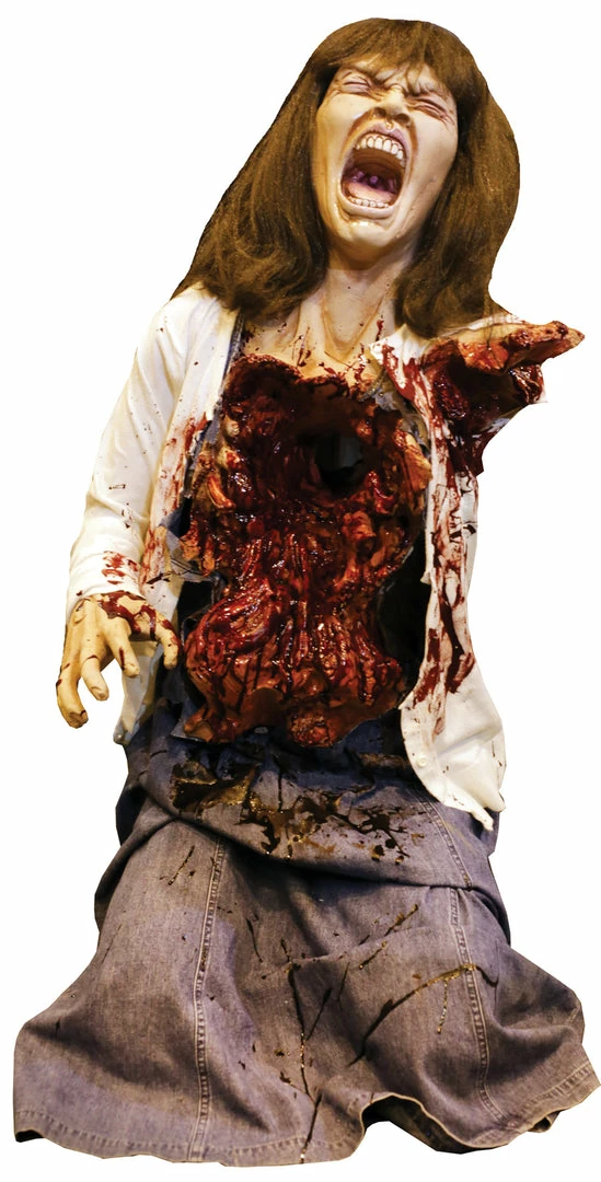 Shocking realism! Life sized, kneeling and shaking. All electric and constructed of latex and foam with a metal armature and motor. Soundtrack CD included. Customer supplies CD player. Clothing may varyÂ