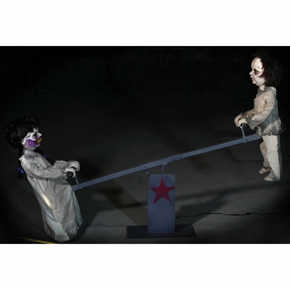 Made of Heavy Durable Solid metal and built to run rigorously for long periods of time, you get your money’s worth with this purchase. Grab 2 of your favorite Monster or Kreepy Kids and place them on either side of the 6 foot long teeter totter and watch them play. Professional haunted house quality décor built by Distortion’s skillful team of designers with over 35 years of firsthand experience. Ran by an AC power cord.