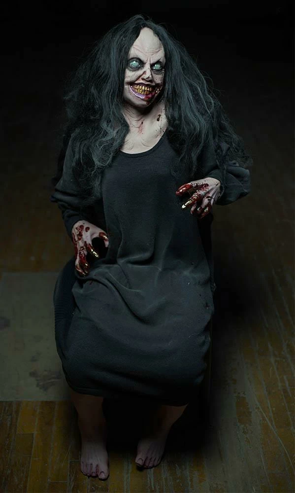 Rancid is a creepy girl Frightronics Halloween prop. All electric prop rocks back and forth and comes with audio track. Costume may vary. Perfect for the professional Haunt builder, home haunt or if you fancy some extra scary this Halloween for your visitors!