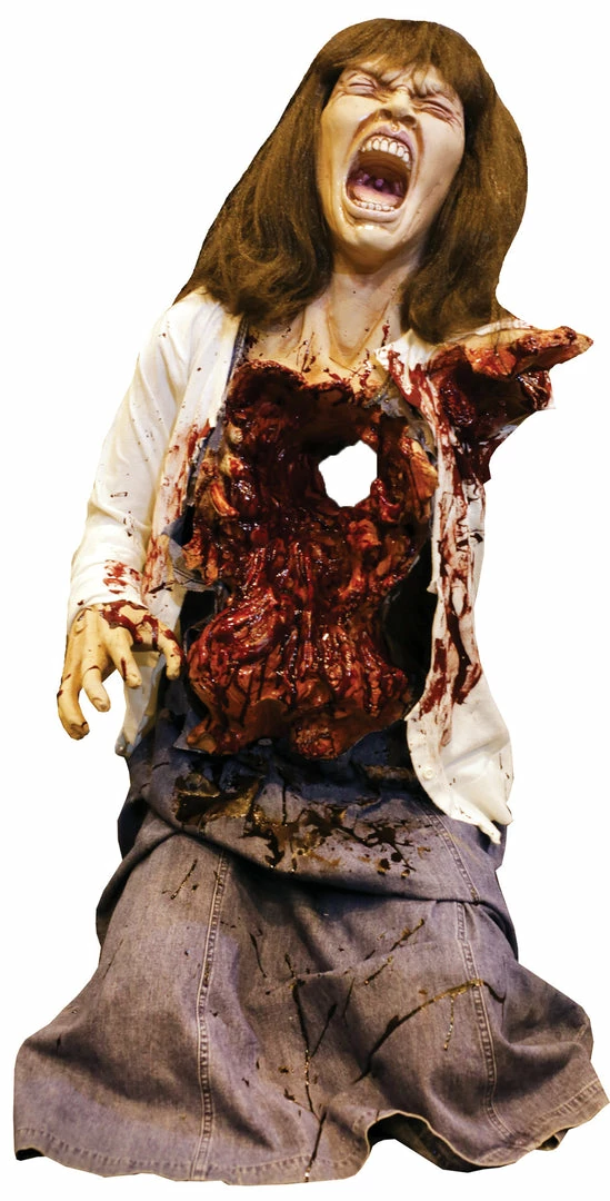 Kneeling, life size, latex and foam with metal armature. Made In USA High Quality gory Halloween productÂ