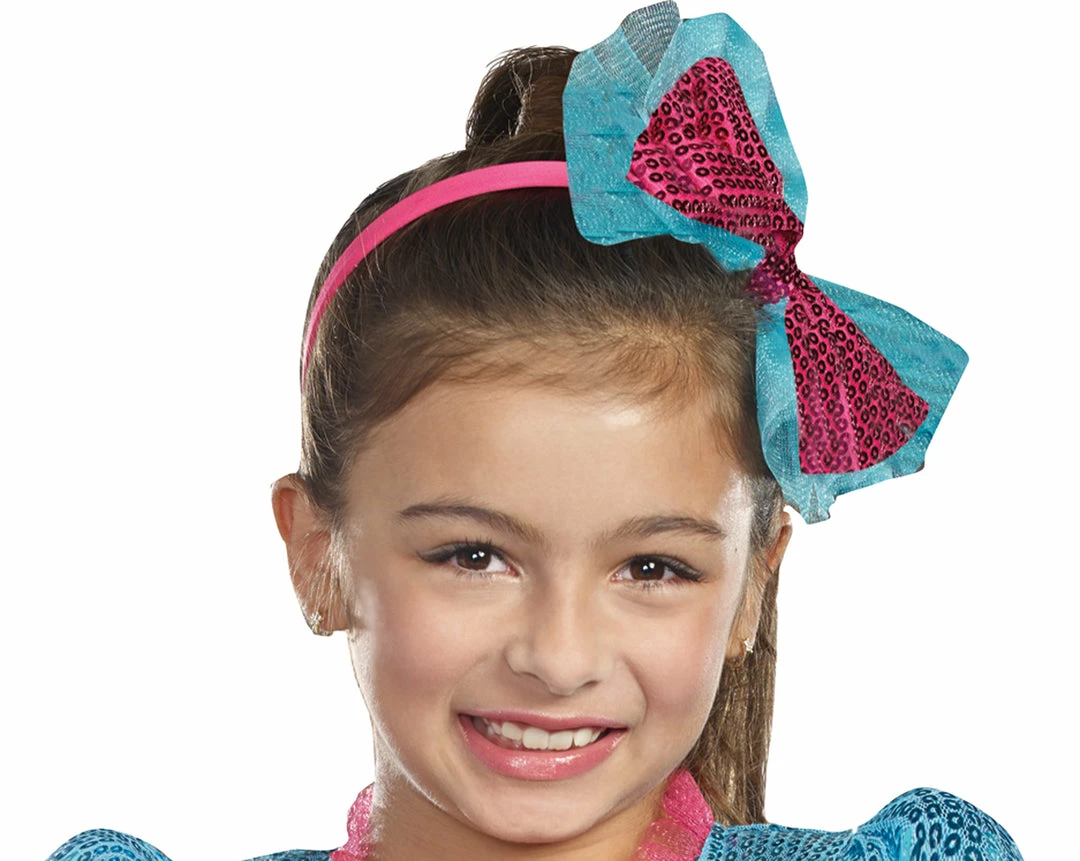 Sequin mesh bow with contrasting mesh accent attached to headband. One size fits most children.