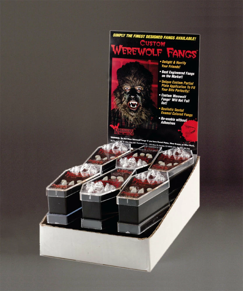 Foothills Creations Makeup & SFX Werewolf Fangs Display – 12 Pairs