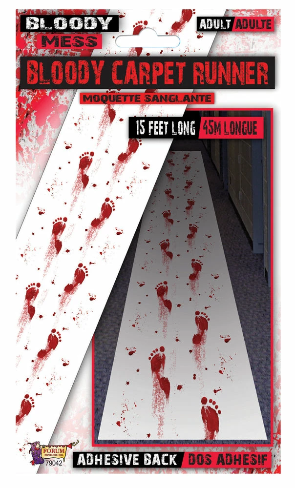 Is it still a red carpet when the red is actually bloody footprints? This bloody carpet runner is sure to add some extra personality to your horror movie premier, Halloween party, or any special event. Runner is 15 feet long and has an adhesive backing.
