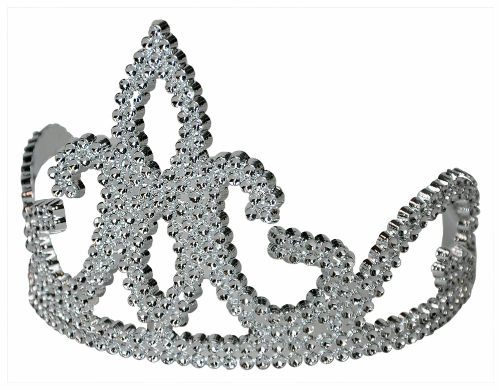 Three-point tiara has lots of sparkle. This beautifully designed tiara has attached hair combs to secure your crown in place at the ball! Small-sized tiara. plastic. One size fits most.