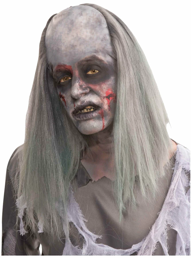 This wig is the perfect complement to any zombie costume. Straight, sooty-looking white blond hair attached to a pale white, dead skin-look pate.