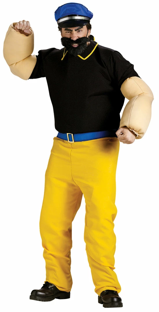 Popeye’s rival for Olive’s affection. Perfect companion to your friend’s Popeye costume! Includes black shirt with muscle arms, yellow pants, blue belt, blue captain’s cap and black beard.