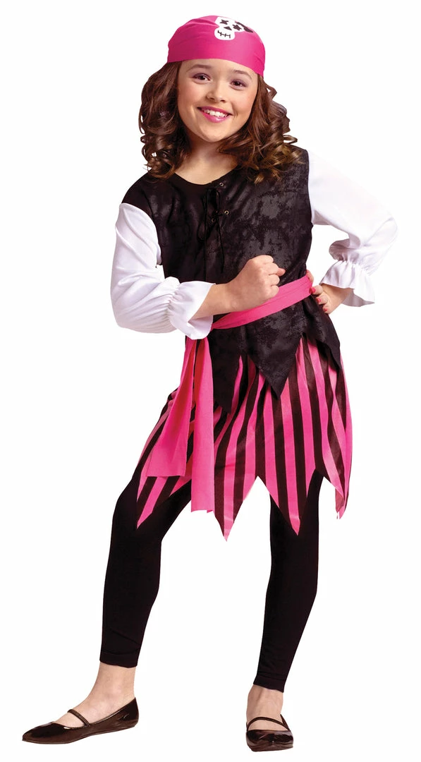 A pirate beauty! Skirt, top, sash, and bandanna. Footless tights are not included.