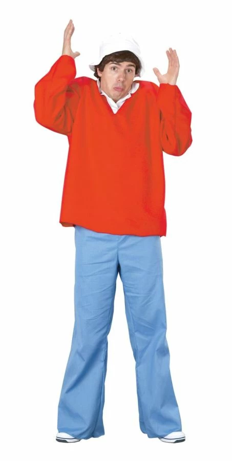 Classic long sleeve shirt pants and hat with hair. One size fits most adults up to 44.