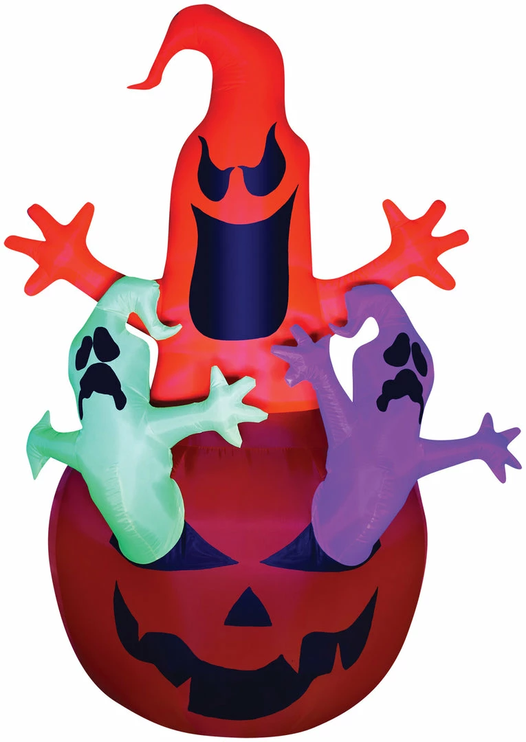 Yard Decoration Airblown Pumpkin Jack with Neon Color Ghosts Trio scene stands almost 7 feet tall! Lights up and self-Inflates in seconds. Includes black light spotlight 4 base stakes 4 tether stakes 4 nylon tethers inflatable unit. ETL listed. Indoor/Outdoor use. Can be used in the daytime too!