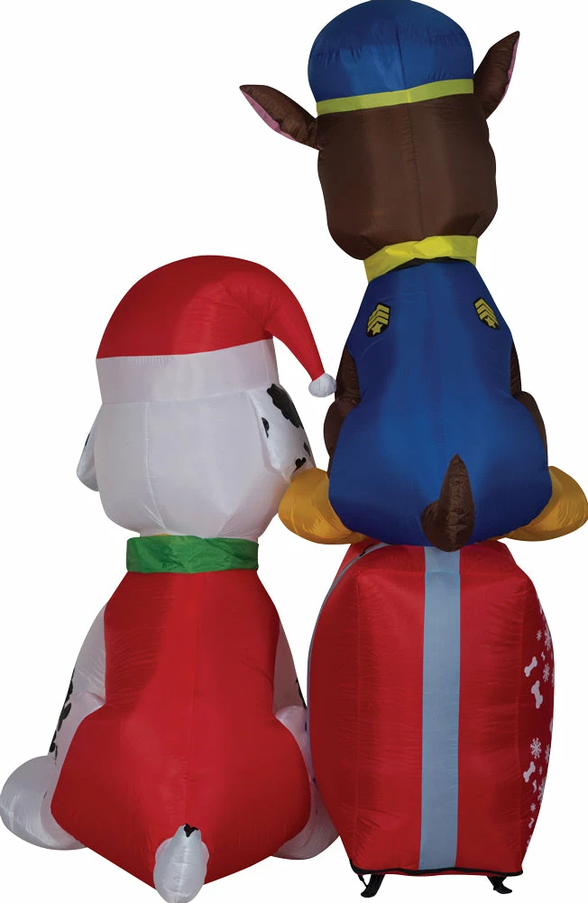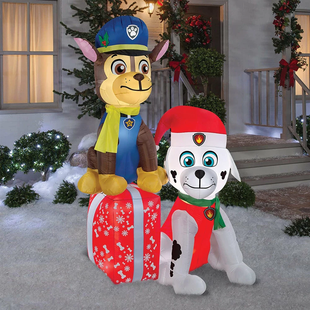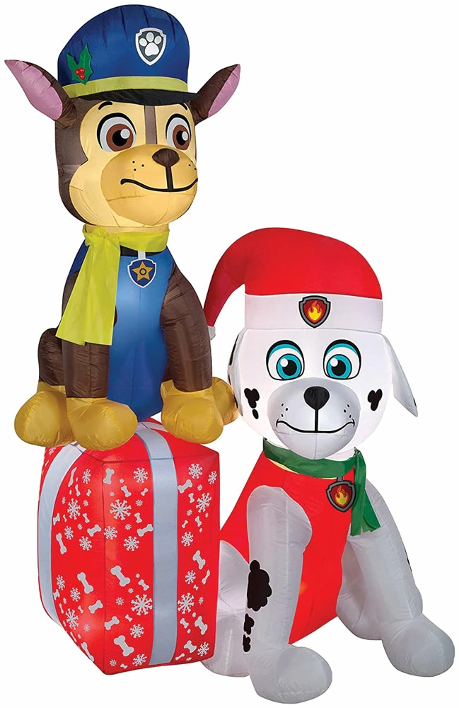 Deck the yard with an Airblown® Inflatable Paw Patrol scene! Featuring Chase, Marshall and a big red present, our PAW Patrol inflatable makes an eye-catching addition to your outdoor Christmas decorations. Setup is super simple. Just plug it in, stake it down and watch the magic unfold. Display this whimsical holiday decoration as a standalone or combine it with other Airblown characters to create a custom scene. Includes everything needed for easy outdoor setup.