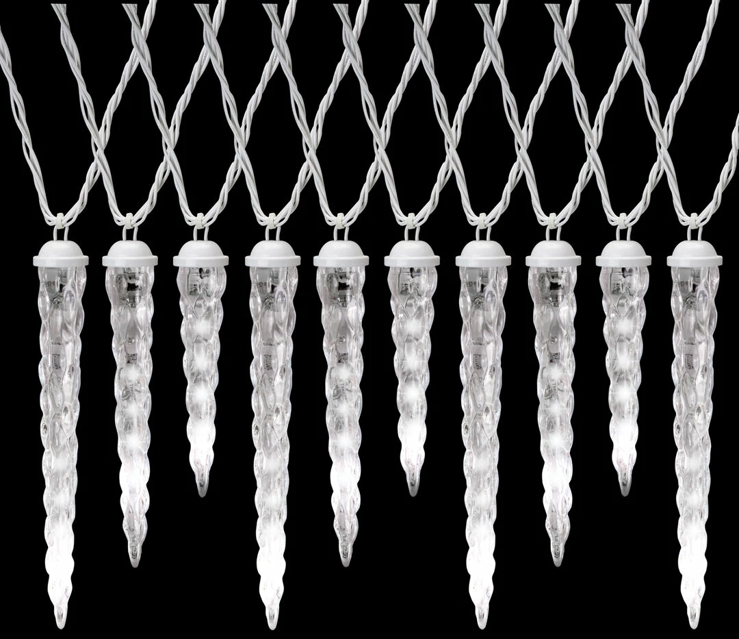 Creates a downward inchesshooting star inches light show ef 61 LED lights. Total length is 10.5 feet long Max. You can connect up to 18 sets together. Set of 10 Icicle lights. ETL listed. White lights. Icecile measures 11 inches apart. Lighted lenght 9ft.
