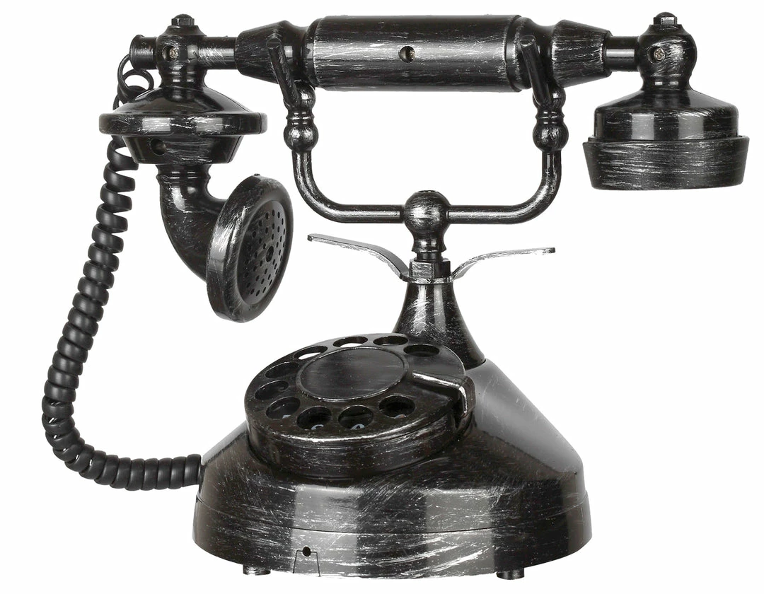 This antique style phone plays a realistic ring when activated by motion. When your unsuspecting guest lifts the receiver it speaks terrifying phrases that will give them the shivers. 3 AA batteries are included. For indoor use only. Rotary spins just like on a real phone! width 9.45in depth 5.51in height 6.5in. Electronics,90%,Plastic,10%