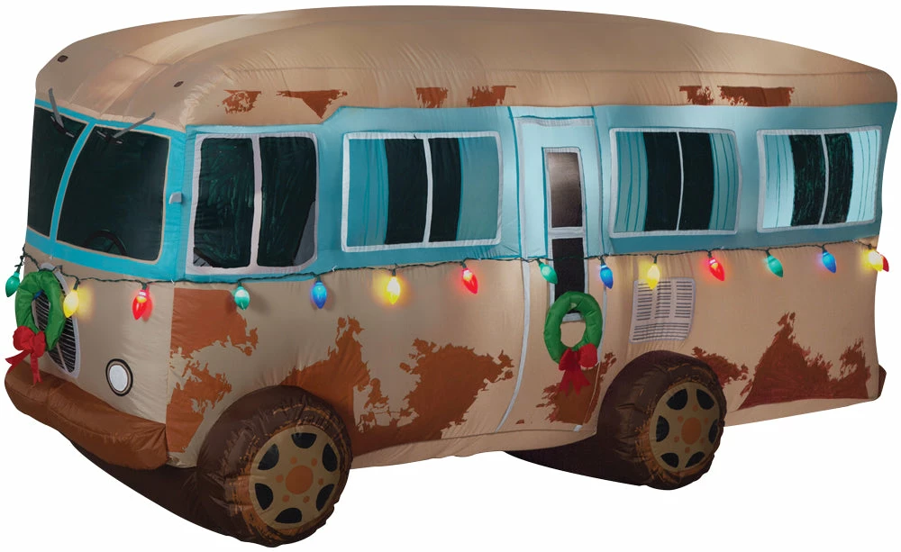 Inspired from the classic holiday movie, National Lampoon’s Christmas Vacation, this outdoor inflatable RV will be the perfect addition to your holiday yard display. This fun Airblown gives your holiday yard decor maximum impact with minimum effort. Comes with everything you need for a quick and easy set-up. Just stake it down and plug it in. Standing at 4 feet tall and 7.5 feet long the RV lights up and self-inflates in seconds.Â