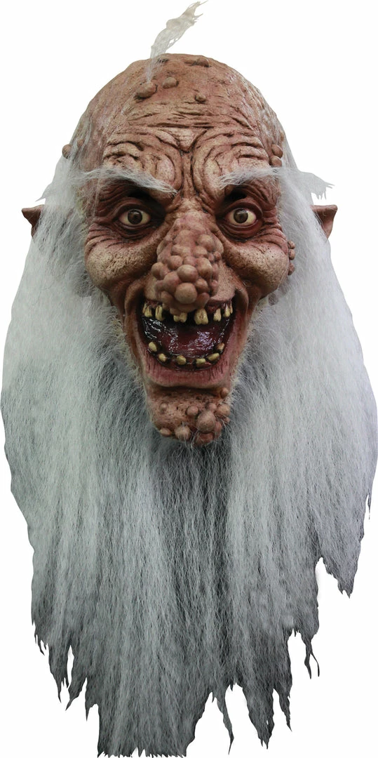 A full over-the-head latex mask featuring disgusting looking troll character with broken teeth and disfigure, mottled features. Comes with attached white beard. One size fits most.