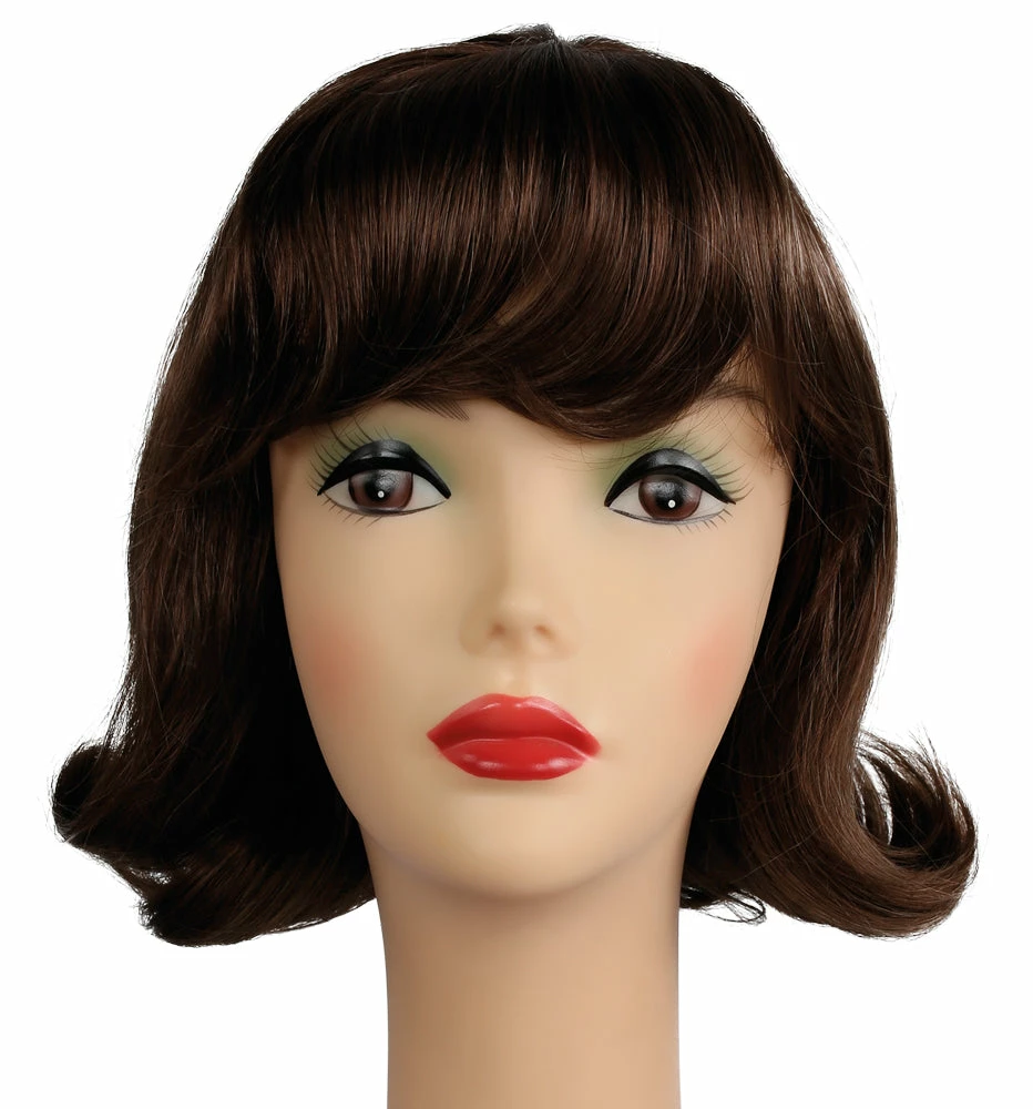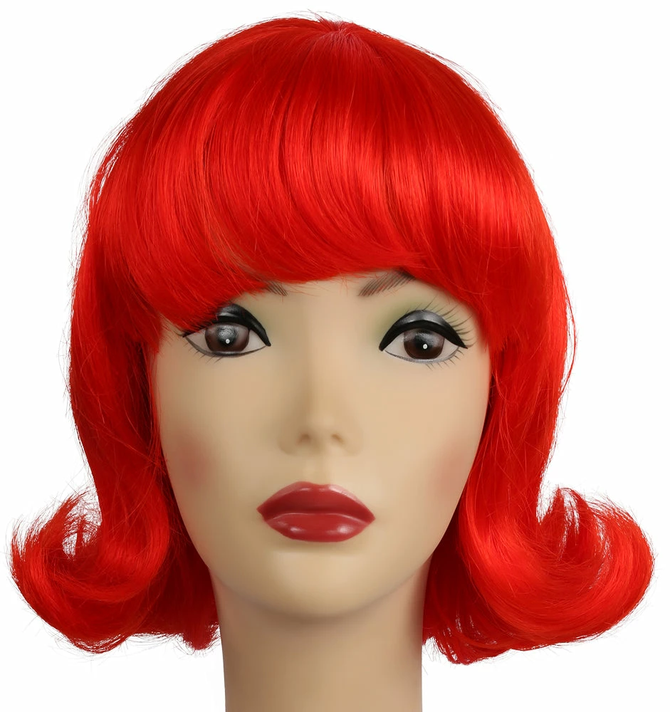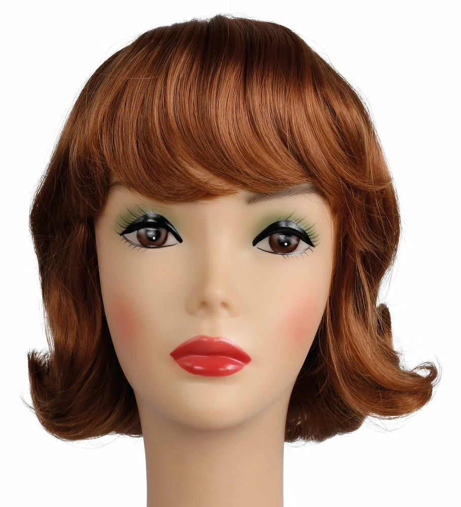Pert and pretty Flip wig, great for “Peanuts.” Chin Length 60’s flip with bangs in a nice quality fiber is perfect for all your 50’s and 60’s musicals and fun characters.