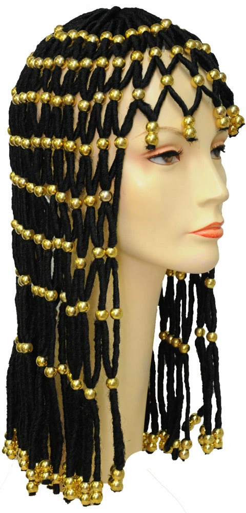 New elaborate play on the Cleopatra-style headdress with gold beads.