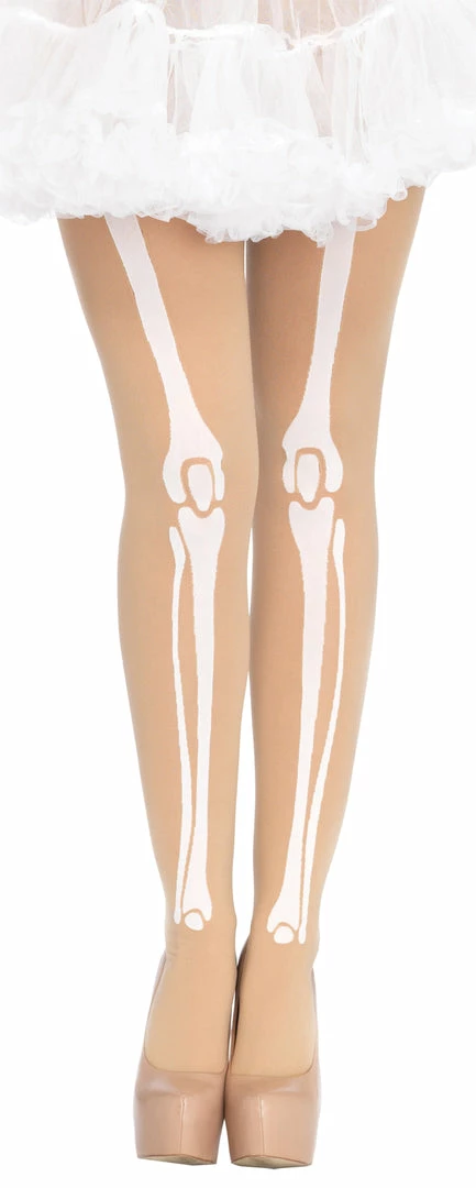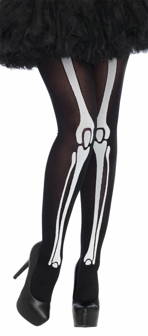 Opaque tights with leg bone prints will be the perfect finishing touch for lots of fun costumes; Day of the Dead zombies skeletons ghouls etc. Even great to wear as an everyday fashion statement! Black with white print. One size fits most. Hips 34-40 in, inseam 35 in, waist 24-32 in, wt 90-160 lbs.