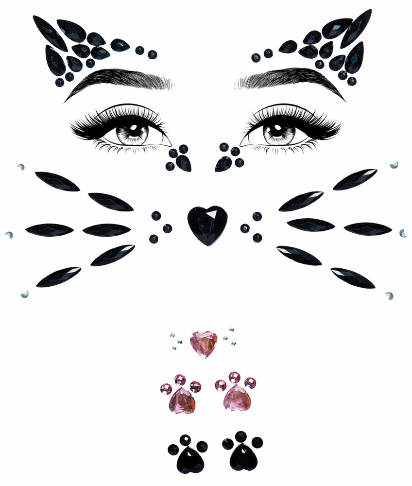 This Animal Adhesive Face Jewel Sticker is the “Perfect” way to bring out your inner cat. These easy to apply jewels compliment any costume. They can be worn alone or to accent any make-up creation.