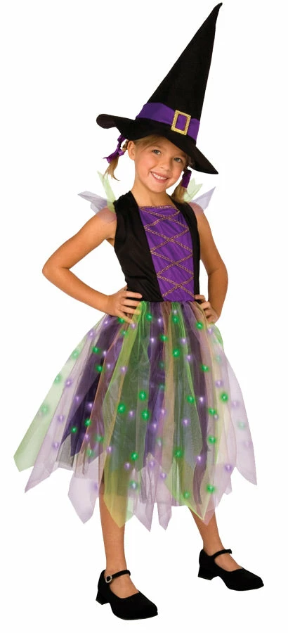 Costume includes: Dress with multi-colored fiber optic lights layered in the skirt, matching hat. 100% polyester.