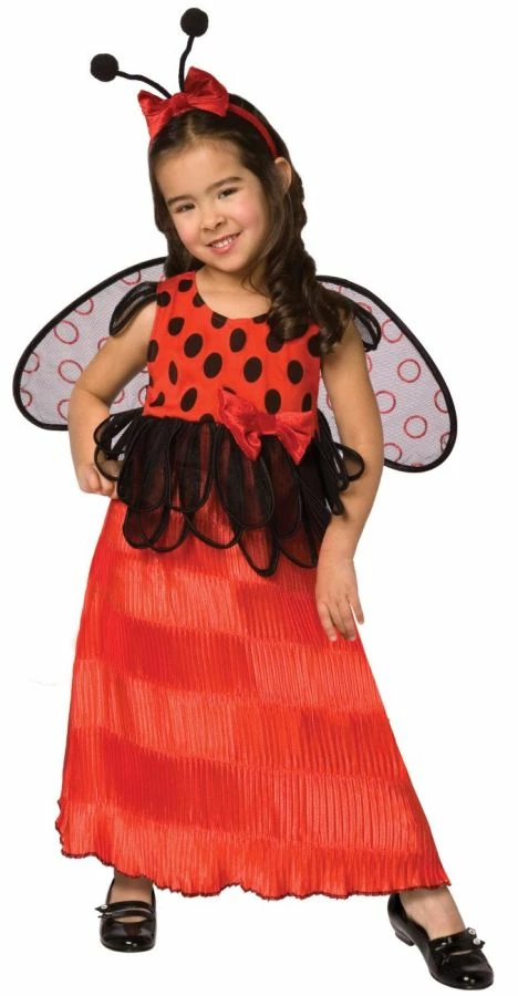 Includes: Adorable polka dotted dress with attached bow, wings, and antennae headband.