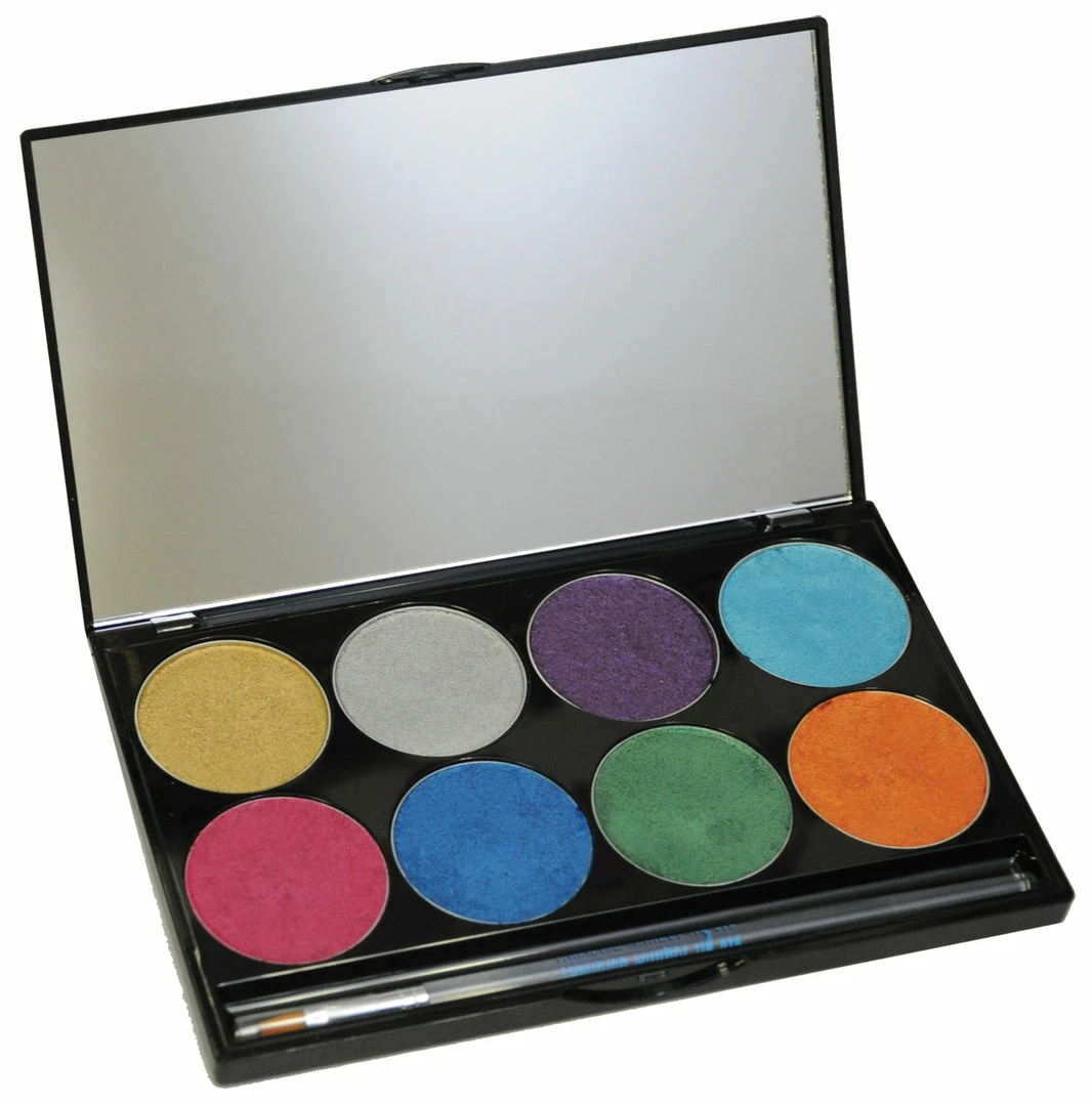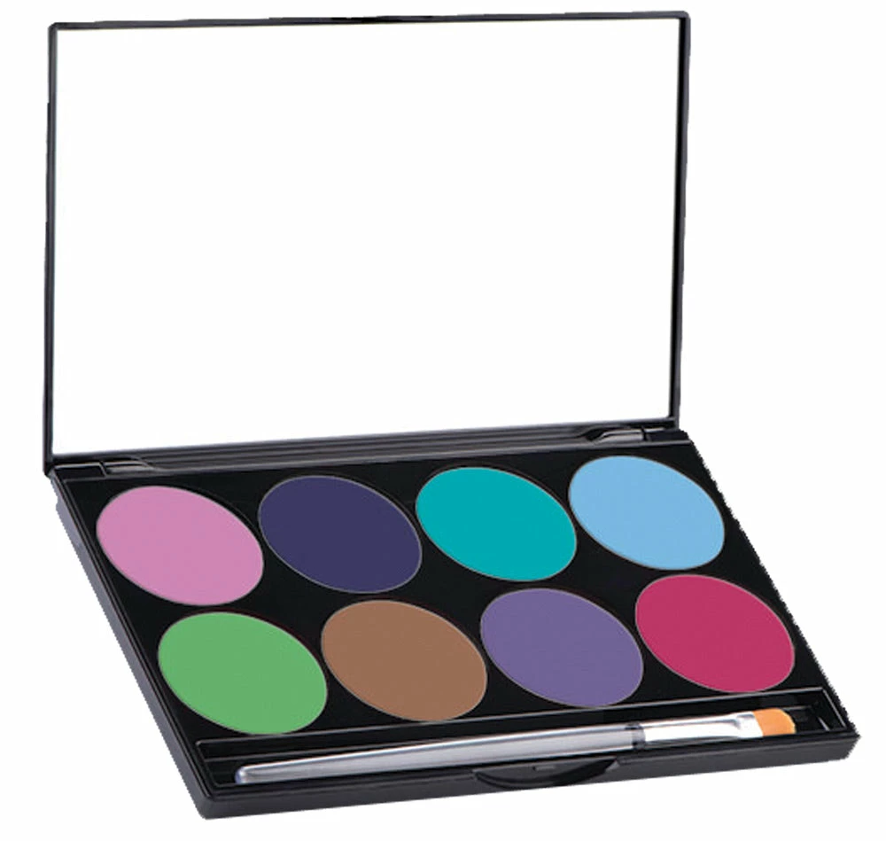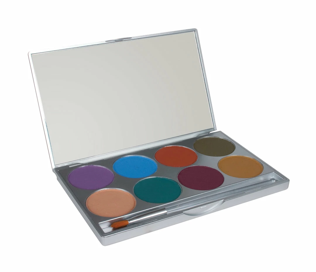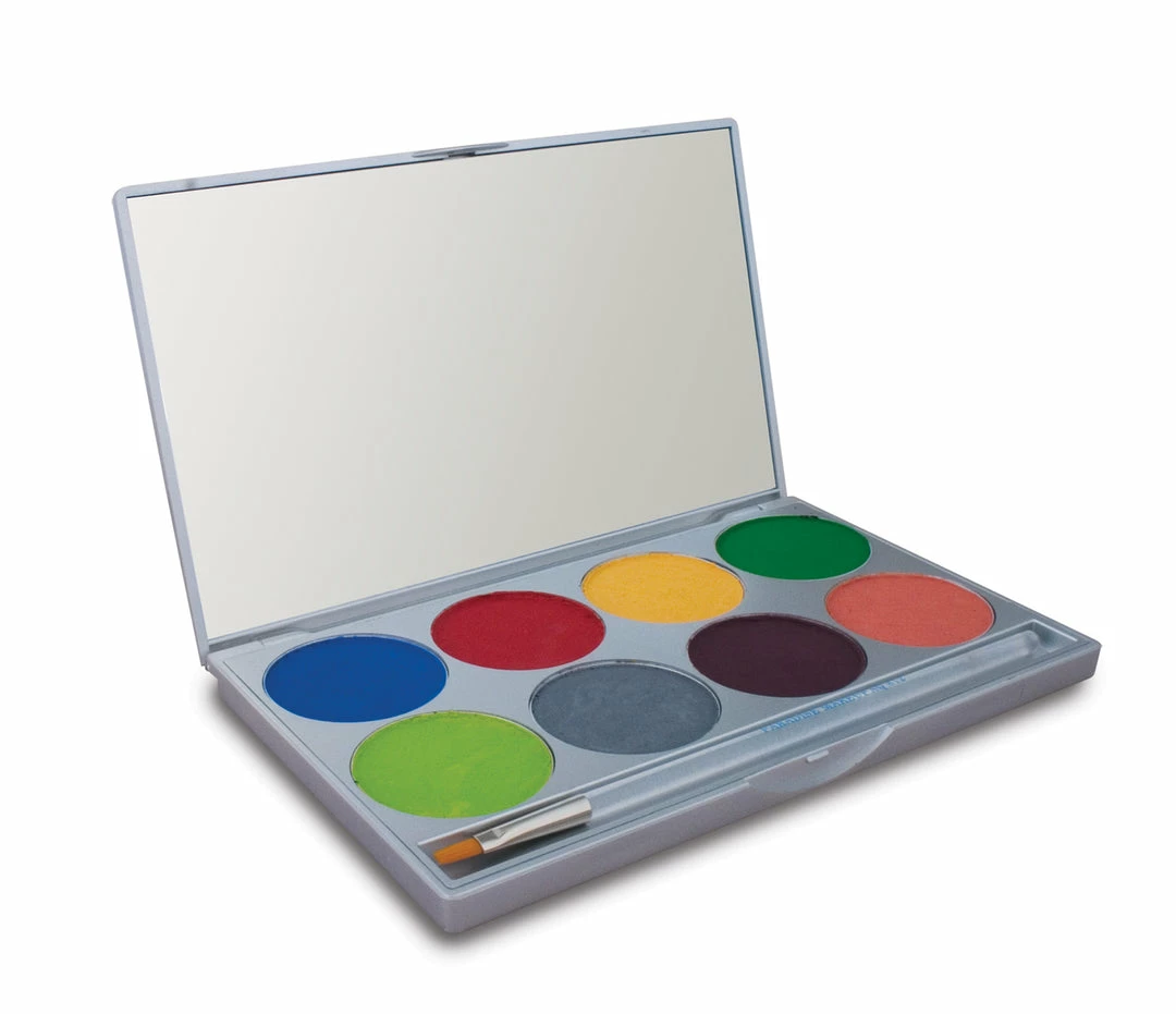 Semi-soft water activated moist cake makeup. Paradise AQ Makeup includes aloe and chamomile and the enriching emollients glycerin avocado oil and cocoa butter so it is safe and gentle on skin. Paradise AQ Makeup has a richer, more vibrant, color-saturated coverage than ordinary makeup yet it’s water-soluble. Easy soap and water removal! Great for body painting! 8 color palette is perfect for artists on the go! Nuance palette has Mauve, Sky, Foxy, Olive, Felou (skin) Deep Sea, Porto, and Dijon colors. Available in a 2 oz (56 g) sleek, stackable, mirrored palette.