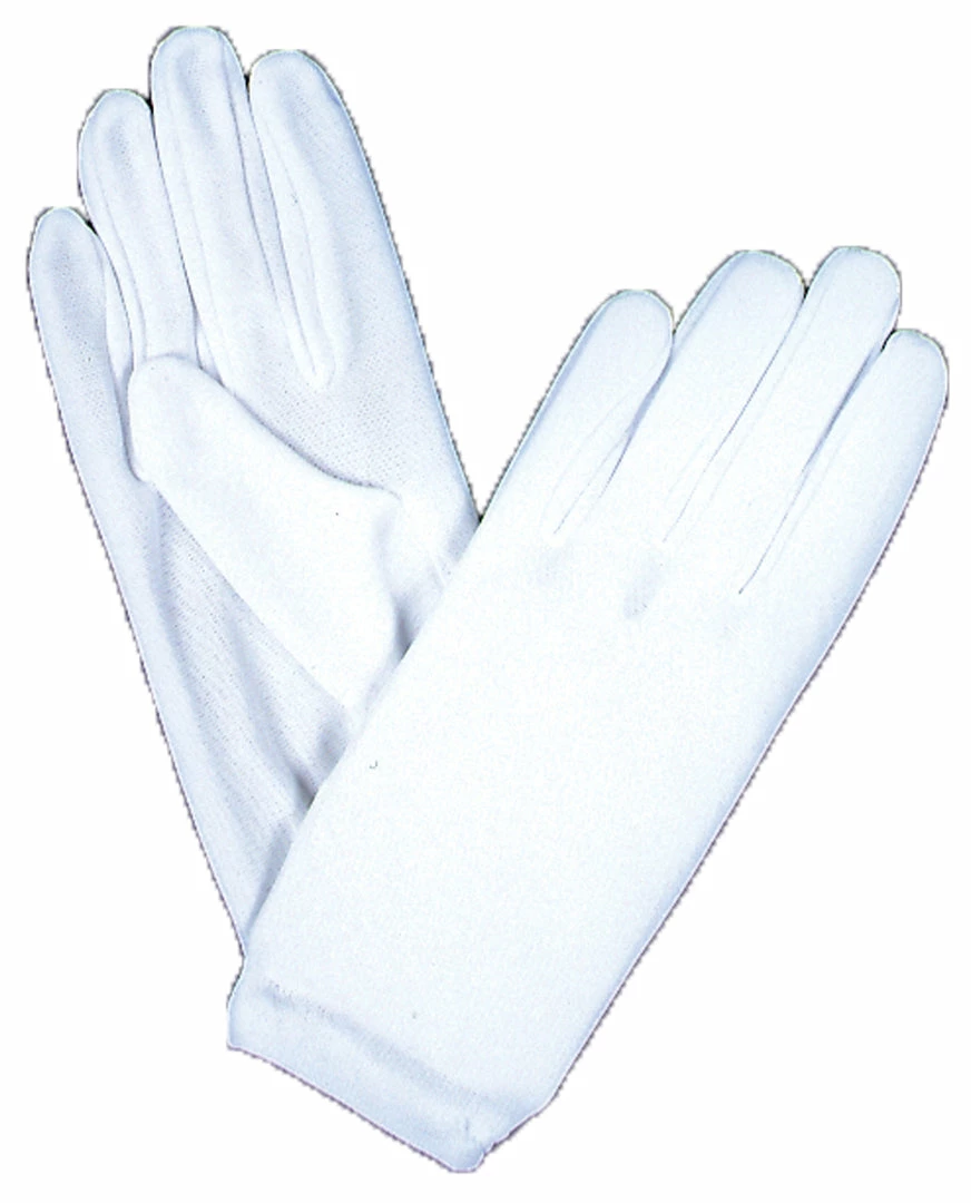 Children’s size wrist length nylon white gloves.