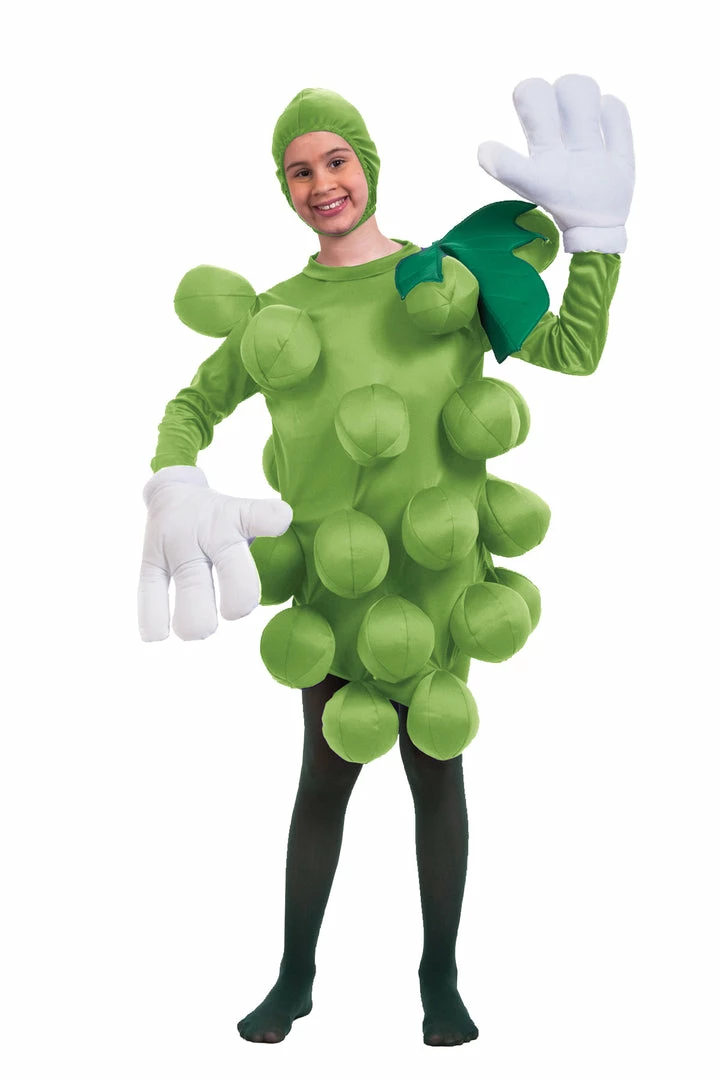 Unique style costume! Bodysuit has pockets attached inflate balloons furnished and place them into pockets for a great looking costume. Hood leaf body and balloons are included. Gloves and tights are not included. One Size fits most children.