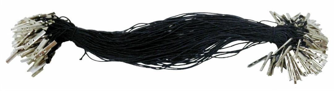 Sold in gross packs only (144). Thin bands for masks with metal ends to go through mask holes. Approximately 7 inches long stretches to 10 inches.