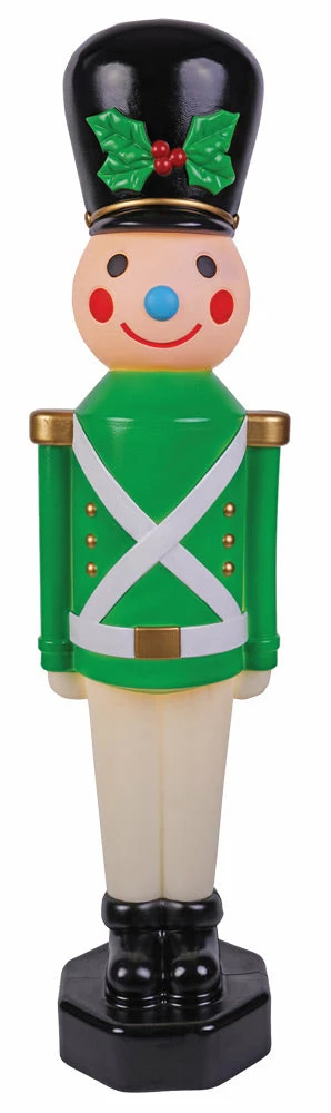 Just the big piece you need for your Christmas display or Santa photo op decoration! Get 2 or more to balance each side! 42-inch blow-molded vintage-style Soldier lights up! Uses two C7 bulbs. For indoor or outdoor use. Easy assembly. Made of: plastic. Background music is not included. 42.52 in tall x 11.02 in long X 9.45 in wide.